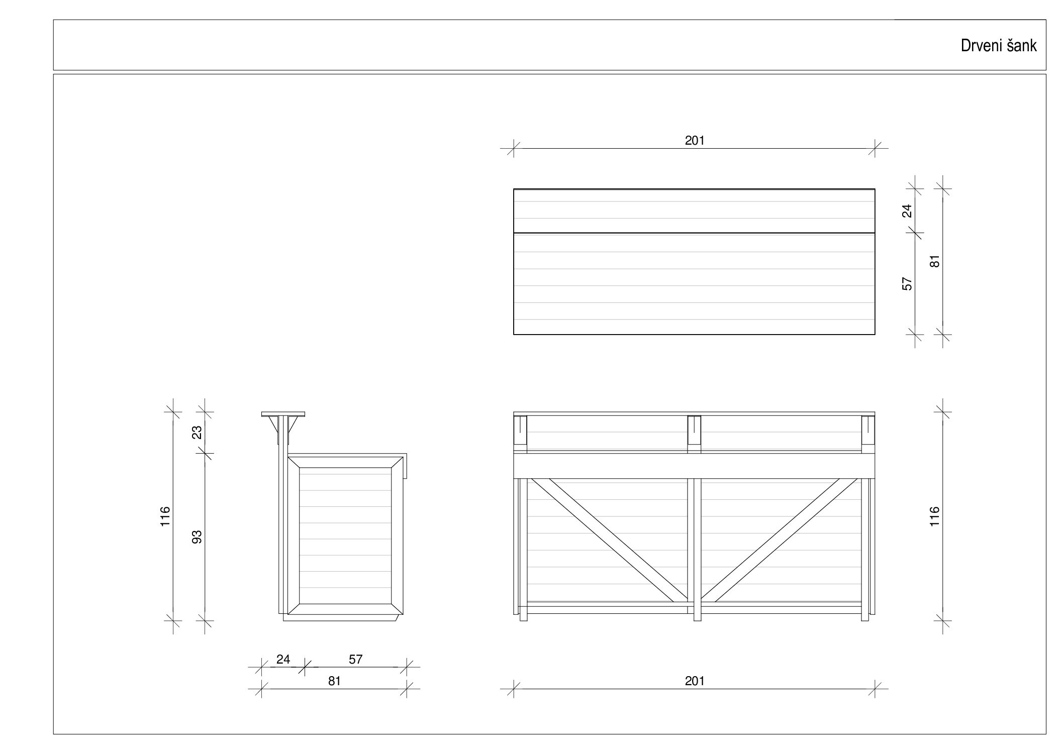 Drveni šankovi dužine 2m – robustni, čvrsti šankovi koji se mogu koristiti u raznim prilikama.